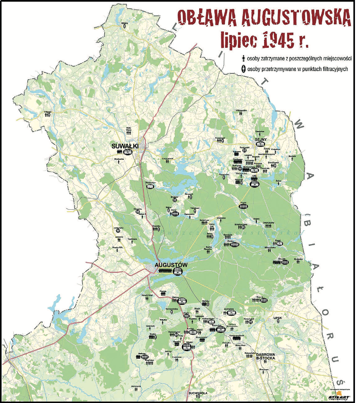 Funkcję pomocniczą pełnili żołnierze Ludowego Wojska Polskiego i kierowani przez Sowietów funkcjonariusze miejscowego Urzędu Bezpieczeństwa. Okrążono olbrzymi teren w Polsce i na Litwie od krańca Puszczy Augustowskiej na północy, od Niemna na wschodzie, Kanału Augustowskiego na zachodzie po Biebrzę, Wołkuszankę i Czarną Hańczę na południu. Obława rozpoczęła się między 10 a 12 lipca 1945 r. Koniec jej umieszcza się między 19 a 28 lipca.