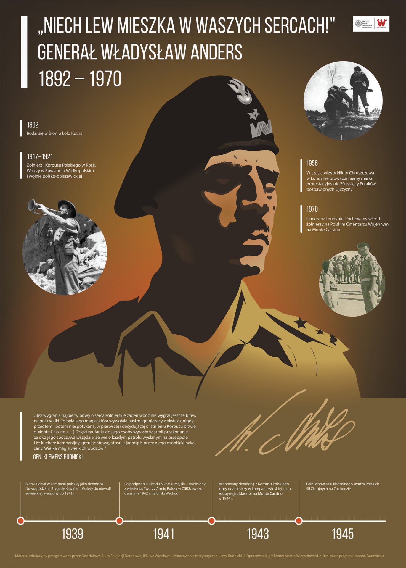 Infografika przedstawiająca życie gen. Władysława Andersa (IPN Wrocław)
