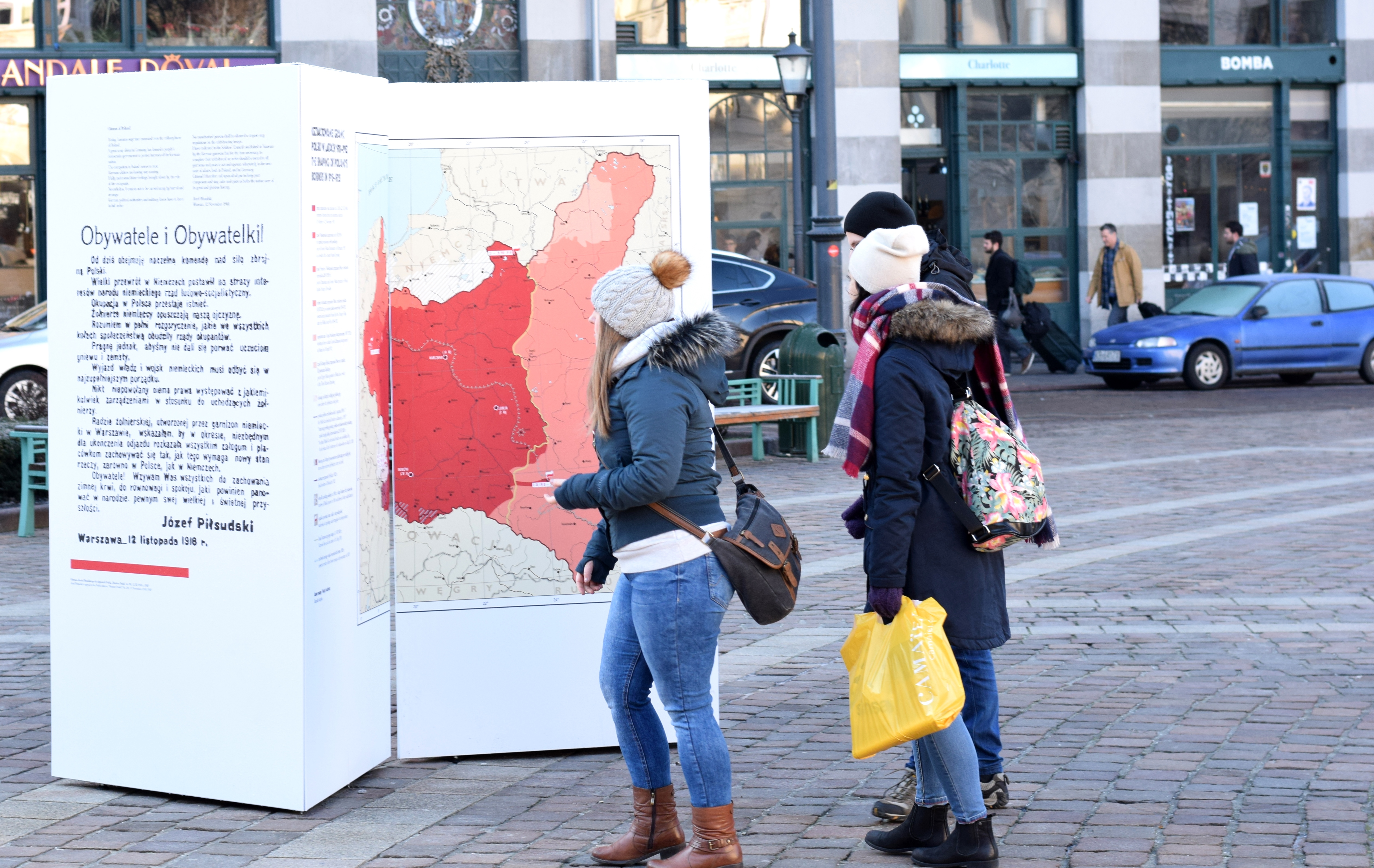 Plenerowa ekspozycja prezentuje liderów walki o wolną Polskę w 1918 r.: Józefa Piłsudskiego, Romana Dmowskiego, Ignacego Jana Paderewskiego, Wincentego Witosa, Wojciecha Korfantego i Ignacego Daszyńskiego. Ponaddwumetrowe plansze z sylwetkami wybitnych mężów stanu opatrzone są ich biogramami w języku polskim i angielskim. Na wystawie znajdziemy także kalendarium najistotniejszych wydarzeń w procesie odradzania się niepodległej Polski oraz kopie najważniejszych dokumentów, związanych z 11 listopada 1918 r. Korzystając ze specjalnej mapy można prześledzić, jak w latach 1918-1921 zmieniały się granice II Rzeczypospolitej.