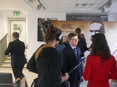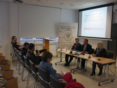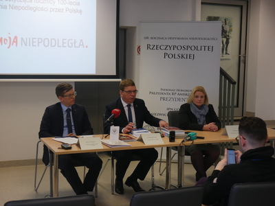 Następnie została zaprezentowana ulotka Krzyż Niepodległości, dotycząca ogólnopolskiego konkursu edukacyjnego „Niezwyciężeni 1918-2018.Pokolenia Niepodległej". Prof. Golon przedstawił także, materiały opublikowane przez IPN dotyczące procesu Komandorów oraz operacji antypolskiej NKWD (1937-1938).