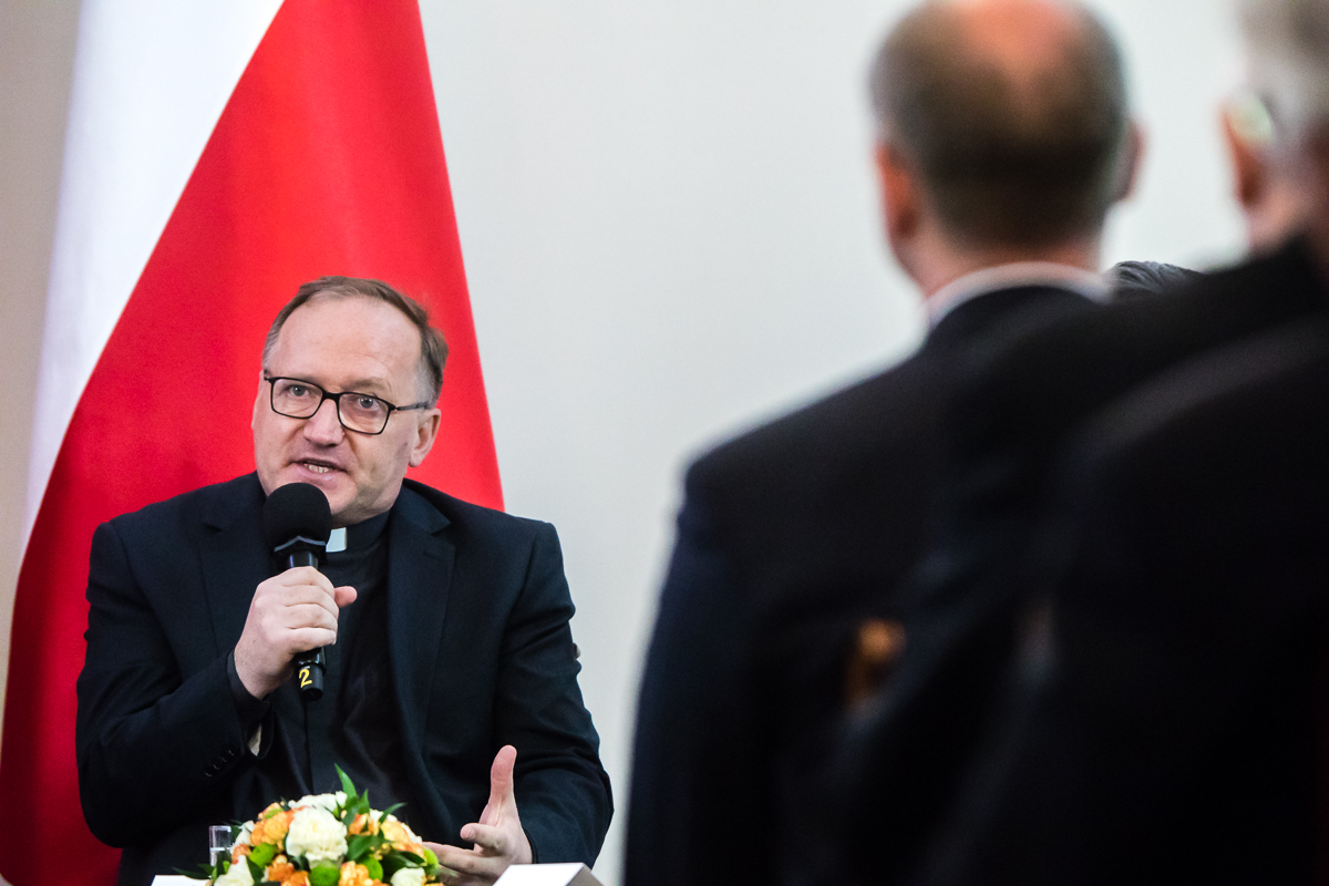 – Nasze debaty mają formę upamiętnienia jubileuszu Stulecia Odzyskania Niepodległości. My dzisiaj – spotykając się i rozmawiając o wkładzie Kościoła w odbudowę Niepodległej – realizujemy zapisy ustawy przyjętej przez Sejm w ubiegłym roku o narodowych obchodach odzyskania niepodległości Rzeczpospolitej Polskiej. Tam jest mowa o uhonorowaniu Ojców Niepodległości, Wojska Polskiego, duchowieństwa różnych wyznań i Kościoła katolickiego w procesie odbudowy niepodległego państwa - podkreślił Wojciech Kolarski.