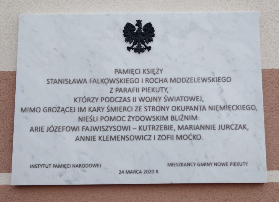 W czasie okupacji hitlerowskiej księża pracowali w parafii rzymskokatolickiej pw. św. Kazimierza w Piekutach Nowych. Ks. Roch Modzelewski był proboszczem, a ks. Stanisław Falkowski wikariuszem. W 1942 r. do ks. Stanisława Falkowskiego zgłosił się czternastoletni Arie Józef Fajwiszyc, któremu udało się zbiec z pociągu wiozącego Żydów do Treblinki. Ks. Falkowski udzielił Fajwiszycowi schronienia i wyrobił fałszywe dokumenty na nazwisko Kutrzeba, które ten zachował do końca swego życia, przeżył wojnę jako pracownik przymusowy w Niemczech, potem zamieszkał w USA. Zmarł w 2013 r. jako znany reżyser i muzyk, jego wspomnienia opublikowano w USA i w Posce. Józef Kutrzeba po wojnie zapraszał kilkakrotnie ks. Falkowskiego do USA, gdzie rozpropagował historię swego ocalenia dzięki polskim duchownym. W pomoc żydowskiemu chłopcu został wtajemniczony również ks. Roch Modzelewski, który przejął się jego losem. Dzięki pomocy księży z Piekut wojnę przetrwały także: Marianna Jurczak, Anna Klemensowicz i Zofia Moćko. Za pomoc udzieloną Józefowie Kutrzebie ksiądz Stanisław Falkowski został w 1977 r. uhonorowany tytułem „Sprawiedliwego wśród Narodów Świata”.