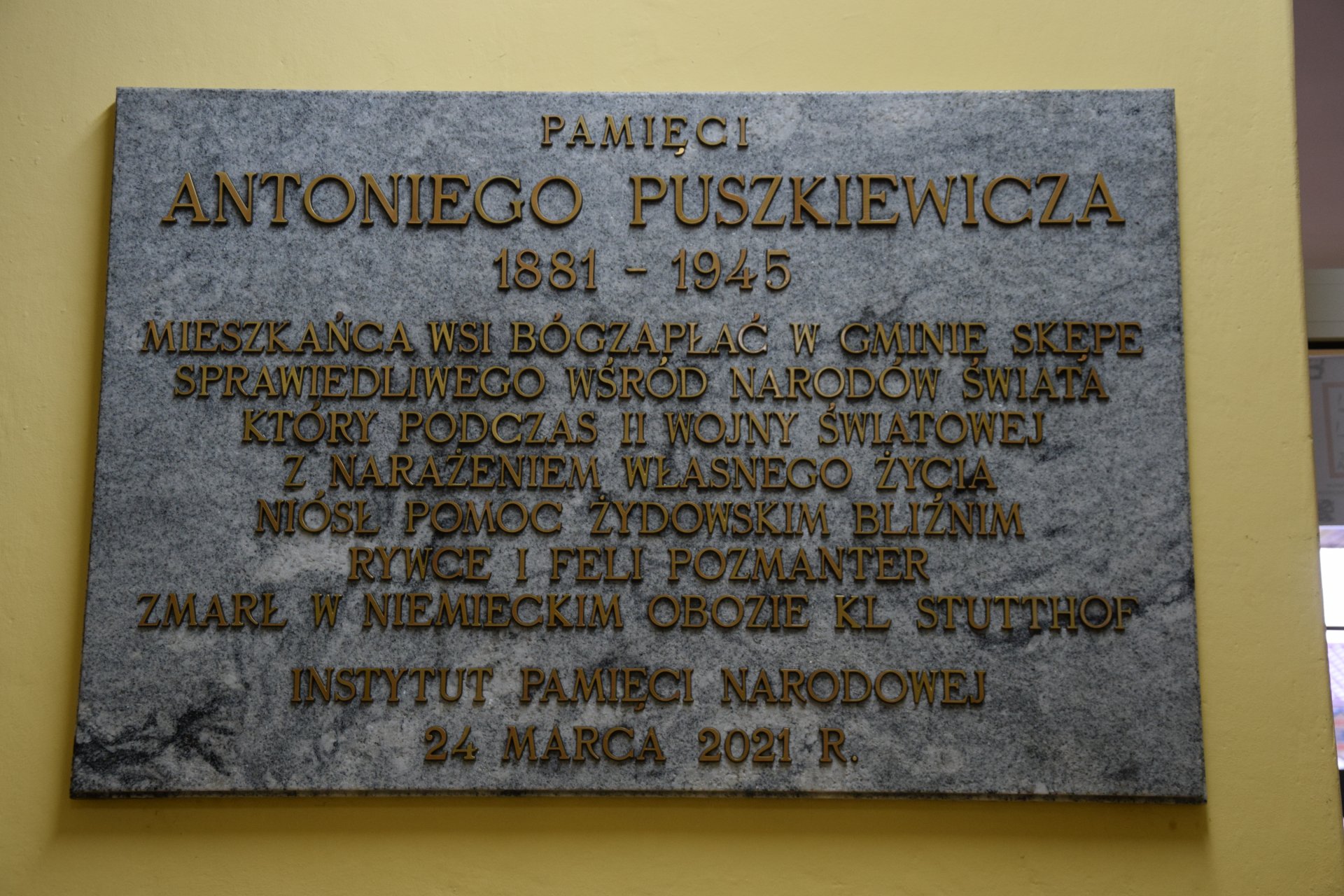 Tablica upamietniająca Antoniego Puszkiewicza, Sprawiedliwego wsród Narodów Świata, w Szkole Podstawowej w Skępem. Z uwagi na obostrzenia wynikające z epidemii Covid-19 nie odbędzie się uroczyste odsłonięcie. Tablica zostanie zaprezentowana w mediach spłecznościowych, a uczniowie szkoły otrzymają foldery poświęcone postaci Antoniego Puszkiewicza
