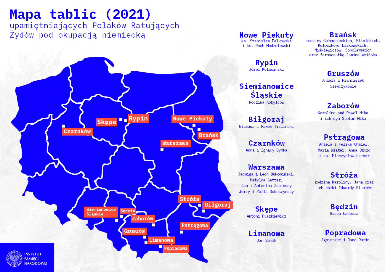 IPN dąży uhonorowania wszystkich, którzy z narażeniem życia udzielali Żydom pomocy podczas niemieckiej okupacji. W tym celu zostaną odsłonięte tablice upamiętniające Polaków, którzy wobec skazanych na Zagładę Żydów wykazali się heroiczną odwagą i głębokim humanitaryzmem. Należy pamiętać, że w krajach znajdujących się pod okupacją niemiecką wszelka pomoc Żydom była karana, jednak w odróżnieniu od krajów Europy Zachodniej wszelka pomoc udzielana Żydom na ziemiach polskich była karana śmiercią.