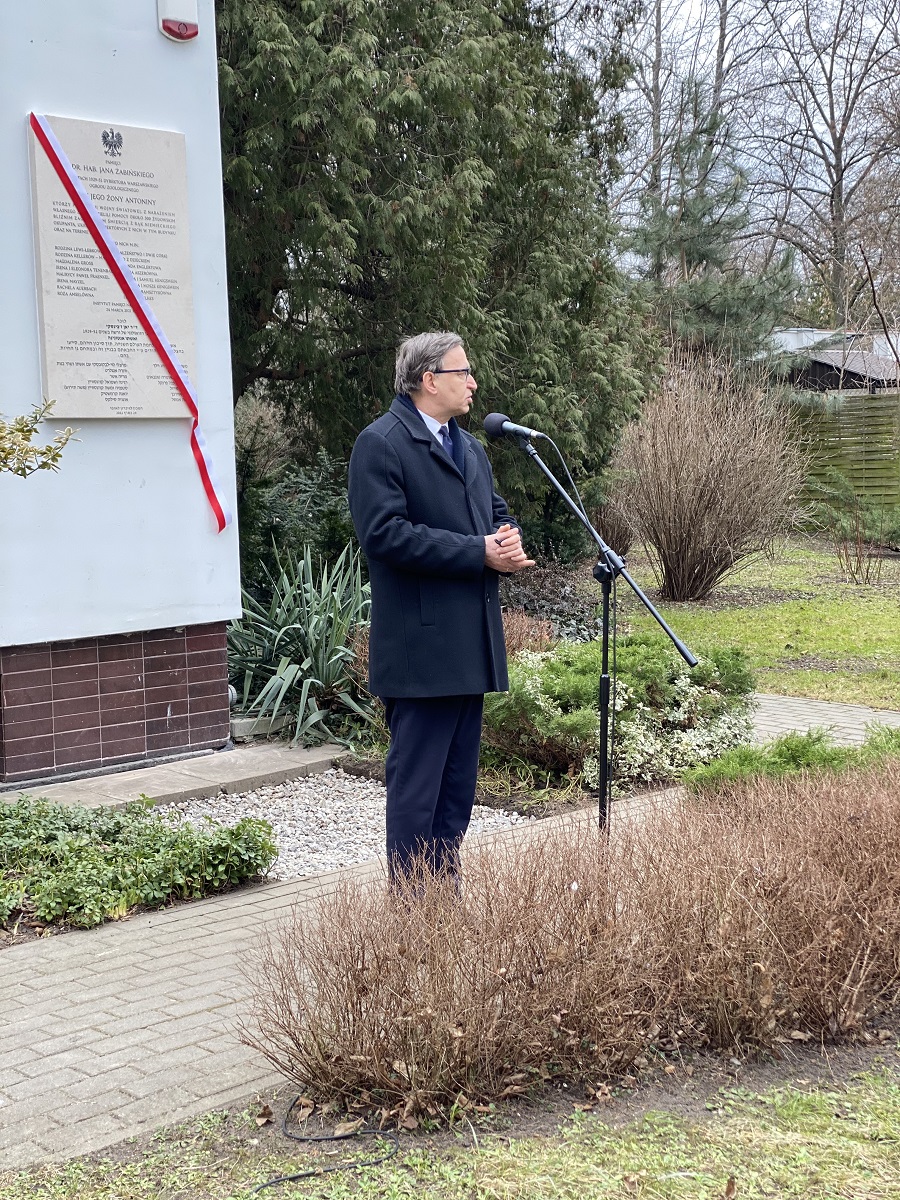 Uroczyste odsłonięcie tablicy upamiętniającej Jana i Antoninę Żabińskich – Sprawiedliwych wśród Narodów Świata – Warszawa, 24 marca 2021. Fot. Łukasz Bielecki (OBUWiM IPN) -