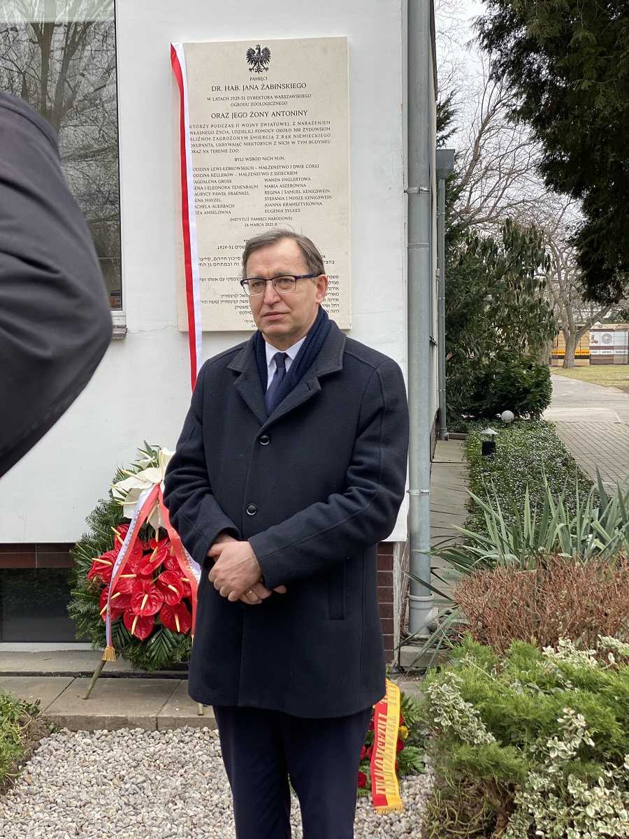 – Skromna i niewielka tablica, którą odsłaniamy, opowiada historię wielkich ludzi – wielkich sercem i miłością – historię dyrektora warszawskiego ZOO Jana Żabińskiego i jego żony Antoniny. W tym miejscu – w tej wilii – w czasach, gdy Polskę i wiele europejskich państw zalewał potop niemieckiego zła, oni zbudowali arkę. Zabrali na nią około 300 Żydów – nazwiska kilku z nich utrwalone są na tej tablicy. Szczęśliwie doczekali czasu, gdy potop zła ustąpił. Nikt ich nie zdradził, a ocaleni opowiadali historię swych dobroczyńców” – powiedział prezes IPN dr Jarosław Szarek podczas uroczystości w warszawskim ZOO.