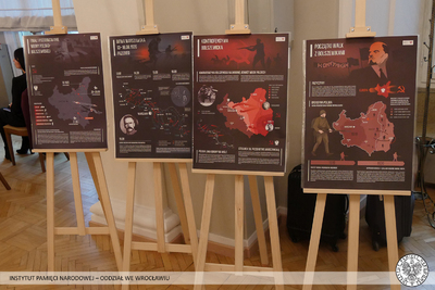Uczestnicy konferencji mieli możliwość obejrzenia grafik o wojnie polsko-bolszewickiej, przygotowanych przez Oddziałowe Biuro Edukacji Narodowej IPN we Wrocławiu.