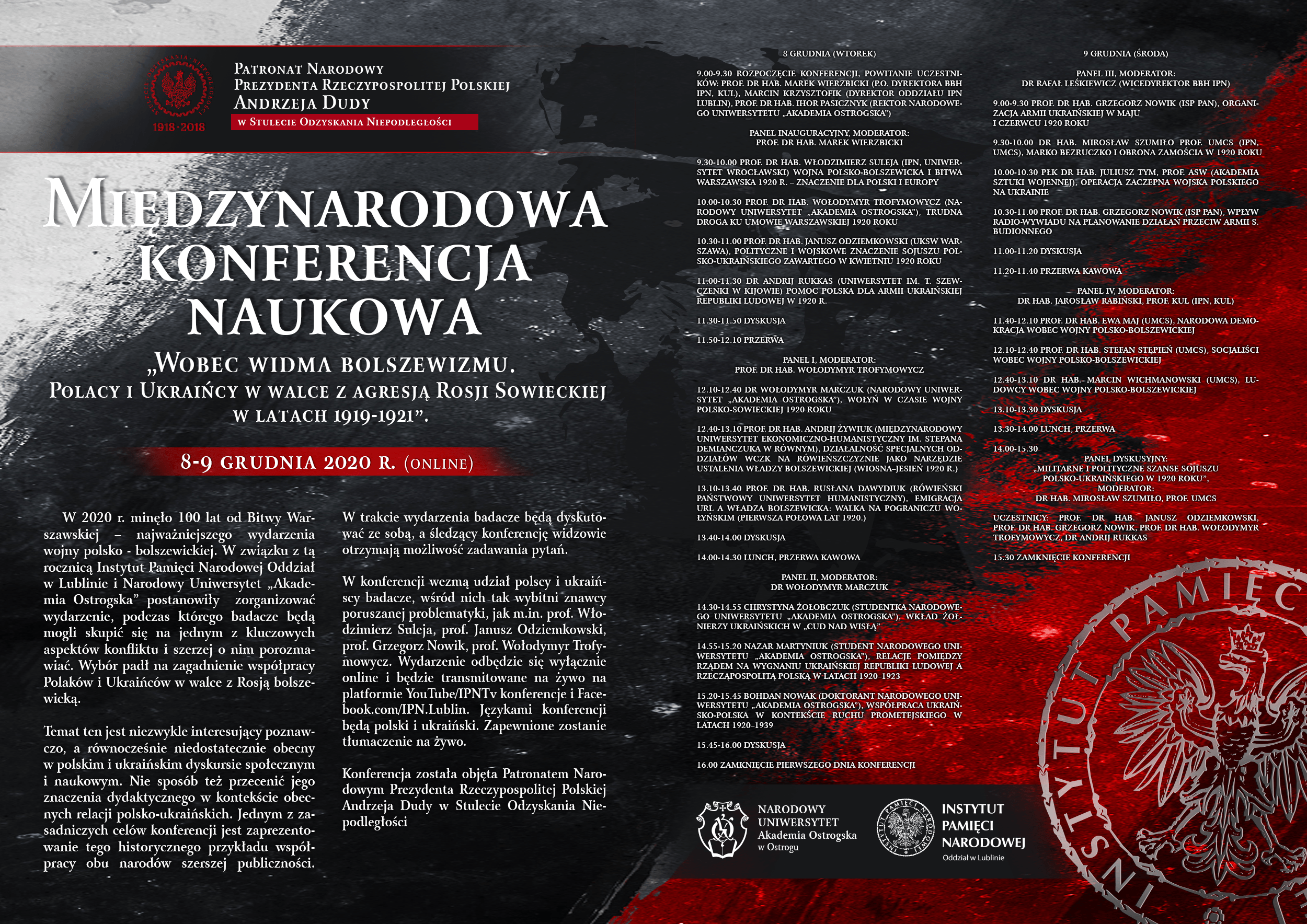 • Plan międzynarodowej konferencji naukowej „Wobec widma bolszewizmu. Polacy i Ukraińcy w walce z agresją Rosji Sowieckiej w latach 1919–1921”