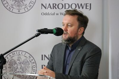 Dr Grzegorz Wołk. Ogólnopolska konferencja naukowa „Obrachunek z dekadą Jaruzelskiego, czyli jak dziś oceniamy ostatnie lata PRL (1981–1989). Przyczynek do bilansu historii politycznej” – Warszawa, 13–14 grudnia 2021. Fot. Aleksandra Wierzchowska (IPN) -