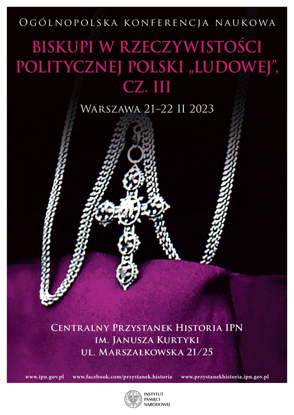 Biuro Badań Historycznych Instytutu Pamięci Narodowej w Warszawie zaprasza na ogólnopolską konferencję naukową „Biskupi w rzeczywistości politycznej Polski »ludowej«” cz. III, która odbędzie się w dniach 21–22 lutego 2023 r. w Centralnym Przystanku Historia im. Janusza Kurtyki w Warszawie (ul. Marszałkowska 21/25).