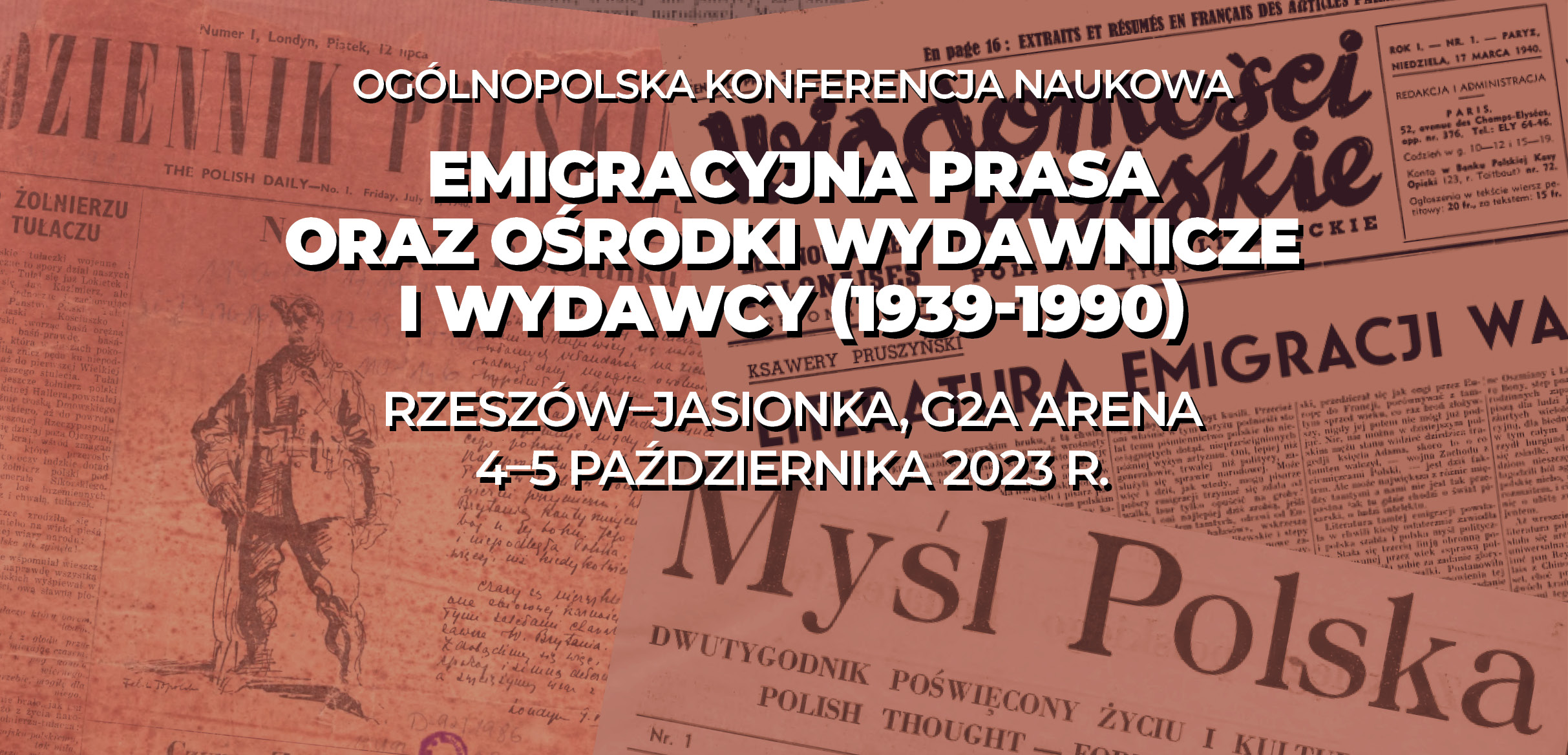 W dniach 4-5 października 2023 r. w G2A Arena, Jasionka 953, Oddziałowe Biuro Badań Historycznych Instytutu Pamięci Narodowej w Rzeszowie organizuje konferencję naukową, której celem jest ukazanie dziejów emigracyjnej prasy polskiej w latach 1939–1990 – tj. wydawnictw będących forum wypowiedzi polskiego wychodźstwa w latach drugiej wojny światowej oraz powojennej emigracji politycznej (z emigracją solidarnościową włącznie).