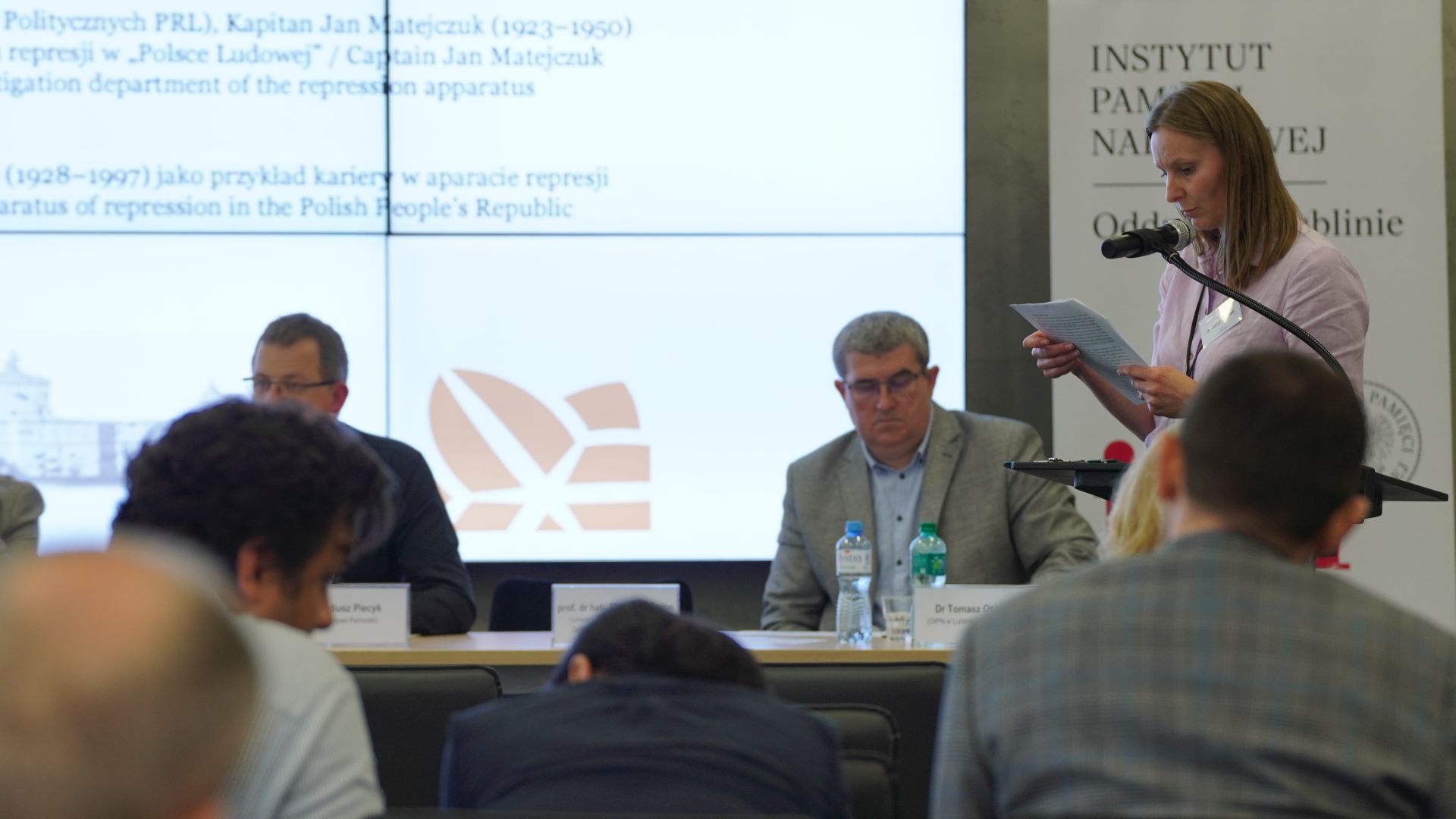 Drugi dzień konferencji otworzyła dyskusja dotycząca stanu i perspektyw badań nad aparatem represji z udziałem przedstawicieli Uniwersytetu Wrocławskiego, Uniwersytetu Ignatianum w Krakowie oraz Instytutu Pamięci Narodowej. Uczestnicy kolejnych trzech paneli dokonali m.in. analizy sposobu definiowania „wroga” w państwach monocentrycznych (na przykładzie spraw prowadzonych przez NKWD przeciw Polakom, oficerom Armii Czerwonej oraz przekazu propagandowego towarzyszącego tzw. wojnie zimowej). Referenci omówili również inne formy represji stosowane wobec osób uznanych za przeciwników systemu (wykorzystanie tzw. psychiatrii represyjnej w ZSRS, prześladowania dotykające alumnów seminariów odbywających służbę wojskową) oraz działalność cenzury (przełożenie kwestii ideologicznych na dopuszczenie do druku zagranicznych powieści). Poddali analizie działania funkcjonariuszy aparatu represji skierowane przeciw osobom i grupom zakwalifikowanym do kategorii „wróg” (np. techniki oraz przesłanki inwigilacji duchownych w Rumunii, represji wobec podziemia, również po 1956 r., stosowanych zarówno przez rodzimy, jak sowiecki aparat przemocy). Prelegenci omówili także budowę struktur aparatu represji i jego kadry. Każdy z paneli zamknęły liczne pytania zadawane przez publiczność prelegentom.