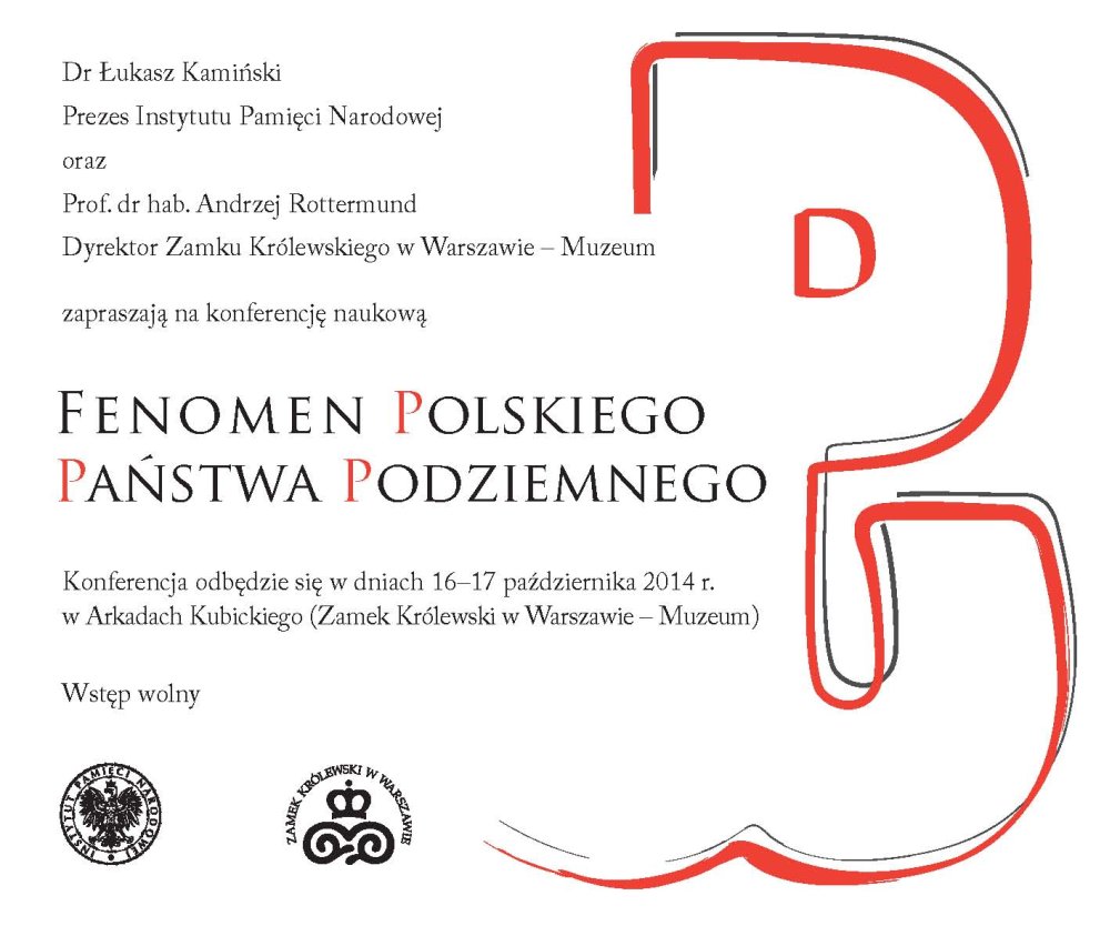 We wrześniu 2014r. przypada 75. rocznica powołania przez gen. MichałaTokarzewskiego-Karaszewicza Służby Zwycięstwu Polski. Z tej okazji InstytutPamięci Narodowej we współpracy z Zamkiem Królewskim w Warszawie organizują ogólnopolskąkonferencję naukową zatytułowaną „Fenomen Polskiego Państwa Podziemnego". Wtrakcie konferencji zaprezentowane zostaną referaty opisujące zarówno strukturywojskowe, jak i cywilne Polskiego Państwa Podziemnego. W zamykającymkonferencję panelu dyskusyjnym, do udziału w którym zaproszeni zostali wybitnibadacze zajmujący się tą tematyką, poruszone zostaną zagadnienia związane zestanem badań nad Polskim Państwem Podziemnym. Podjęta zostanie także próba odpowiedzina pytanie, na czym polegał fenomen Polskiego Państwa Podziemnego oraz jaki jegoobraz funkcjonuje w świadomości współczesnych Polaków.