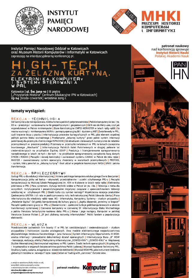 Interdyscyplinarna konferencja naukowa „High-Tech za »żelazną kurtyną«. Elektronika, komputery i systemy sterowania w PRL” – Katowice, 23–24 września 2015