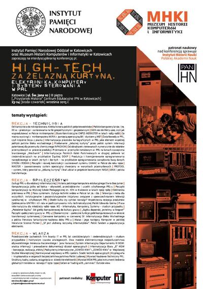 W dniach 23–24 września wnowo otwartym Centrum Edukacyjnym Oddziału IPN w Katowicach odbyły się obradykonferencji High Tech za „Żelaznąkurtyną”. Elektronika, komputery i systemy sterowania w PRL.