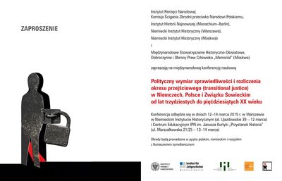 Konferencjaodbędzie się w dniach 12–14 marca 2015 r. w Warszawie w Niemieckim InstytucieHistorycznym (al. Ujazdowskie 39 – 12 marca) i Centrum Edukacyjnym IPN im.Janusza Kurtyki „Przystanek Historia” (ul. Marszałkowska 21/25 – 13–14 marca). Wszystkichzainteresowanych serdecznie zapraszamy do udziału w konferencji.