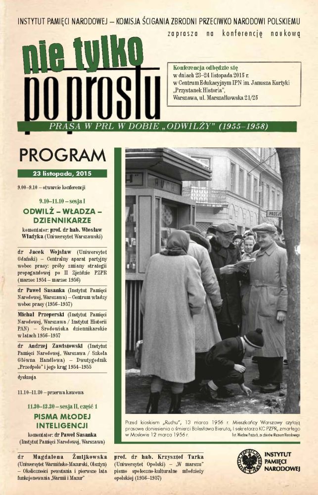 Termin i miejsce konferencji: Warszawa, Centrum Edukacyjne IPN im.Janusza Kurtyki przy ul. Marszałkowskiej 21/25.