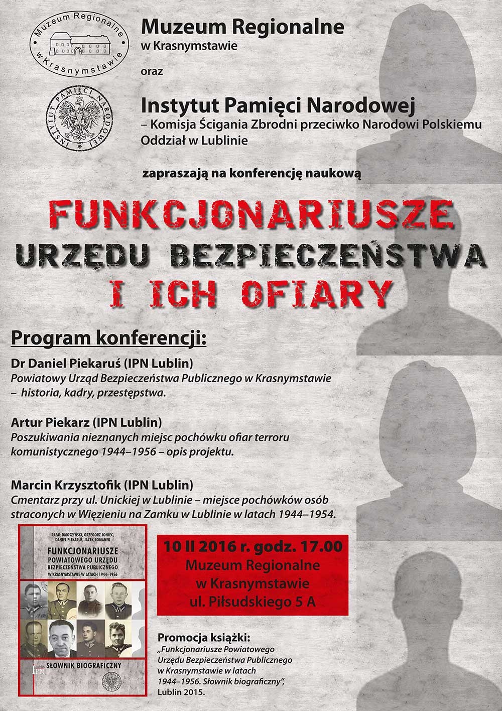 10 lutego (środa), o godz. 17.00, w Muzeum Regionalnym w Krasnymstawie (ul. Piłsudskiego 5A) odbyła się konferencja naukowa „Funkcjonariusze Urzędu Bezpieczeństwa i ich ofiary”.