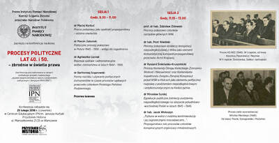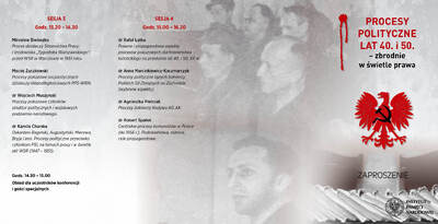 W czwartek, 25 lutego br.w Centrum Edukacyjnym IPN im. Janusza Kurtyki Przystanek Historia, przy ul. Marszałkowskiej 21/25 w Warszawie odbyła się konferencja naukowa „Procesy polityczne lat 40. i 50. – zbrodnie w świetleprawa”.