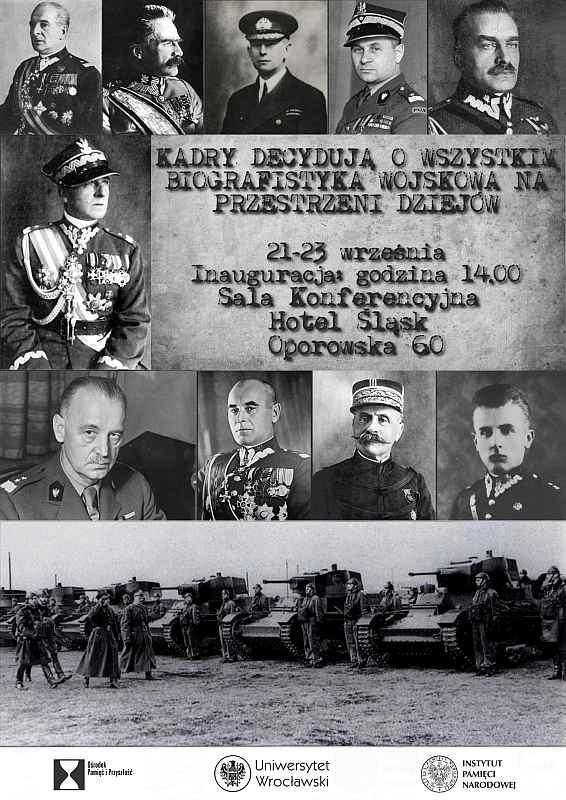 W dniach 21–23 września br. we Wrocławiu odbyła się ogólnopolska konferencja naukowa „Kadry decydują o wszystkim – biografistyka wojskowa na przestrzeni dziejów”. Sesję zorganizowały: Oddział Instytutu Pamięci Narodowej we Wrocławiu, Instytut Historyczny Uniwersytetu Wrocławskiego oraz Ośrodek „Pamięć i Przyszłość”. Konferencja odbyła się w sali konferencyjnej hotelu „Śląsk” we Wrocławiu przy ul. Oporowskiej 60.