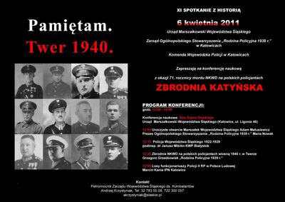 Urząd Marszałkowski Województwa Śląskiego, Zarząd Ogólnopolskiego Stowarzyszenia „Rodzina Policyjna 1939 r.” w Katowicach oraz Komenda Wojewódzka Policji w Katowicach zorganizowały konferencję naukową z okazji 71. rocznicy mordu NKWD na polskich policjantach pt.„Zbrodnia Katyńska”, która odbyła się 6 kwietnia 2011 w Sali Sejmu Śląskiego w Urzędzie Marszałkowskim w Katowicach (ul. Ligonia 46) .
