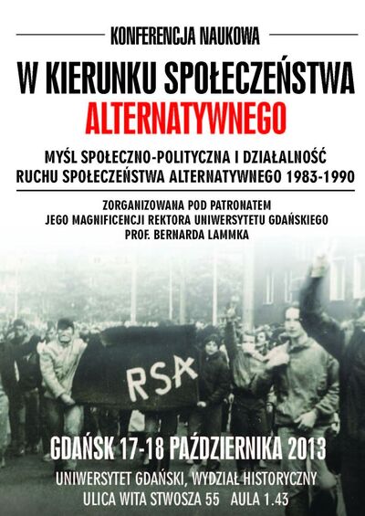W ramach Centralnego Projektu Badawczego Opozycja w Polsce 1976–1989. Encyklopedia Solidarności Europejskie Centrum Solidarności, Oddziałowe Biuro Edukacji Publicznej IPN w Poznaniu i Gdańsku, Parlament Studentów Uniwersytetu Gdańskiego, Rada Doktorantów Uniwersytetu Gdańskiego, Region Gdański NSZZ „Solidarność" oraz Wydział Historyczny Uniwersytetu Gdańskiego zapraszają w dniach 17–18 października 2013 r. do udziału w konferencji naukowej „W kierunku społeczeństwa alternatywnego. Myśl społeczno-polityczna i działalność Ruchu Społeczeństwa Alternatywnego 1983–1990". Patronat nad konferencją sprawuje Jego Magnificencja Rektor Uniwersytetu Gdańskiego Prof. Bernard Lammek.