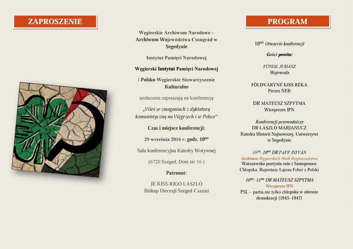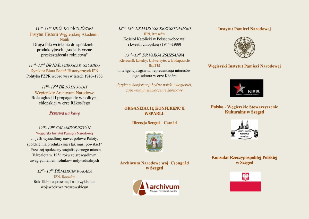 Przygotowanie tej imprezy to wynik współpracy Instytutu Pamięci Narodowej z węgierskim Komitetem Pamięci Narodowej (NEB). Historycy polscy i węgierscy przedstawią podczas konferencji stan badań nad sytuacją wsi i ludności chłopskiej w czasie władzy komunistycznej w obu krajach.