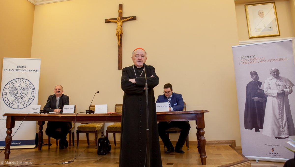 Odwołując się do roli, jaką odegrał Kościół w Polsce pod przewodnictwem kard. Wyszyńskiego w czasach PRL, prezes IPN nawiązał do jednej z fotografii, wykonanych podczas uroczystości milenijnych, które odbyły się w czerwcu 1966 r. na placu Zamkowym w Warszawie. Na zdjęciu widać trzech wielkich Polaków: kard. Karola Wojtyłę, abp. Antoniego Baraniaka i prymasa Stefana Wyszyńskiego w otoczeniu tłumów wiernych.