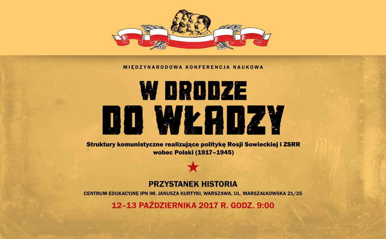„W drodze do władzy – struktury komunistyczne realizujące politykę Rosji Sowieckiej i ZSRR wobec Polski (1917–1945)” to tytuł międzynarodowej konferencji zorganizowanej przez Instytut Pamięci Narodowej Oddział w Warszawie, która odbyła się w dniach 12–13 października 2017 r. (czwartek, piątek) w Centrum Edukacyjnym IPN im. Janusza Kurtyki Przystanek Historia, przy ul. Marszałkowskiej 21/25 w Warszawie.