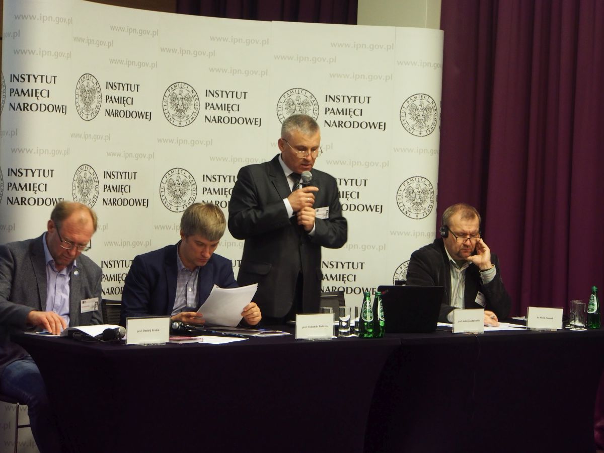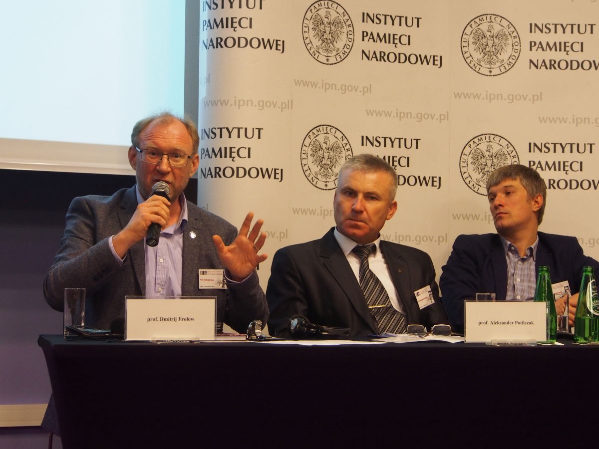 Od lewej: prof. Dmitrij Frołow, Narodowe Archiwum Finlandii, prof. Aleksander Potilczak, Narodowy Uniwersytet Pedagogiczny w Kijowie, prof. Aleksiej Zacharczenko, Moskiewski Uniwersytet Pedagogiczny