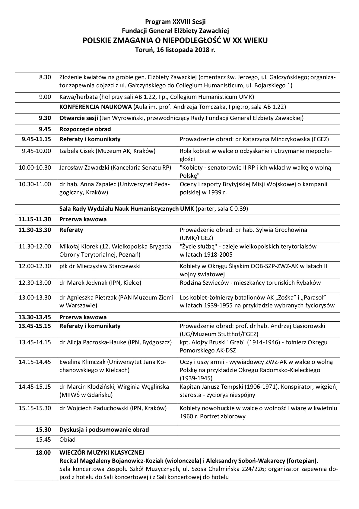 XXVIII Konferencja naukowa „Polskie zmagania o niepodległość w XX wieku” – Toruń, 16 listopada 2018