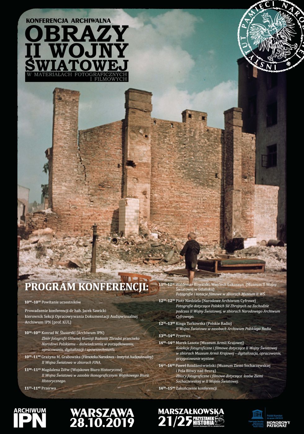 Archiwum IPN już po raz jedenasty zorganizowało konferencję archiwalną z okazji Światowego Dnia Dziedzictwa Audiowizualnego, na której poruszana była tematyka dokumentacji pozaaktowej. Temat tegorocznej konferencji był ściśle związany z przypadającą w tym roku 80. rocznicą wybuchu II Wojny Światowej. Referenci omówili stan zachowania, digitalizacji i opracowania dokumentacji fotograficznej i audiowizualnej obrazującej dramatyczne wydarzenia lat 1939–1945 w Polsce i na świecie.