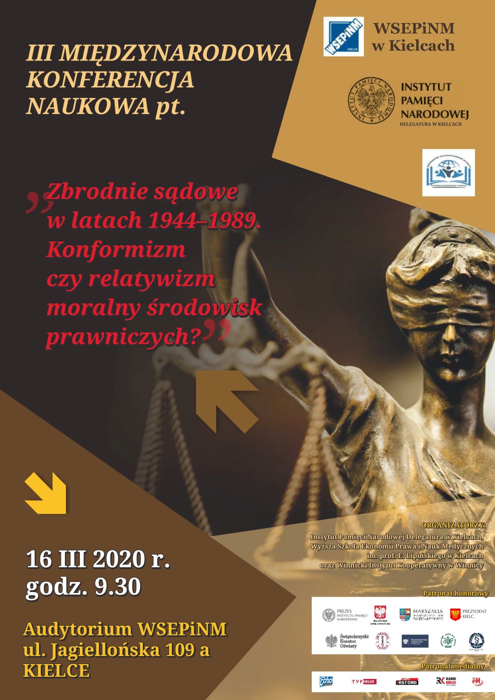 [ODWOŁANA] Międzynarodowa konferencja naukowa „Zbrodnie sądowe w latach 1944–1989. Konformizm czy relatywizm moralny środowisk prawniczych?” – Kielce, 16 marca 2020