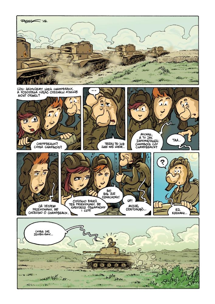 Antek żegna się definitywnie ze współtowarzyszami broni z 2. Korpusu Polskiego gen. Władysława Andersa (także z kapralem Wojtkiem – misiem). Nie oznacza to jednak końca jego wojennej odysei. Trafia on na dopiero co utworzony przez aliantów drugi front we Francji, gdzie po udanym lądowaniu w Normandii od wielu tygodni trwają zacięte walki z Niemcami pod Caen. Działając w ramach 1. Dywizji Pancernej, dowodzonej przez słynnego gen. Stanisława Maczka (zwanego „Bacą”), Antek ma teraz za zadanie rozpoznać siły nieprzyjaciela przed decydującym atakiem. Jego przyjaciele – „Piroman” i Janka – przechodzą zaś pod komendą kpr. Puzona przyspieszony kurs pancerniacki. Ich ścieżki krzyżują się podczas jednej z najważniejszych bitew 1944 r. we Francji – pod Falaise. Czy uda im się sprowadzić pomoc dla broniących się resztkami sił oddziałów polskich na Mont Ormel? Czy Antkowi uda się poskromić tygrysa? Odpowiedzi na te pytania znajdziecie w piątym zeszycie „Wojennej odysei Antka Srebrnego 1939–1944”.