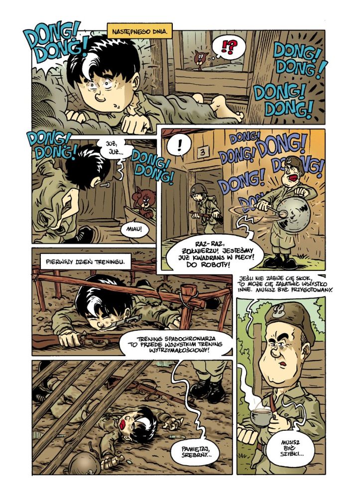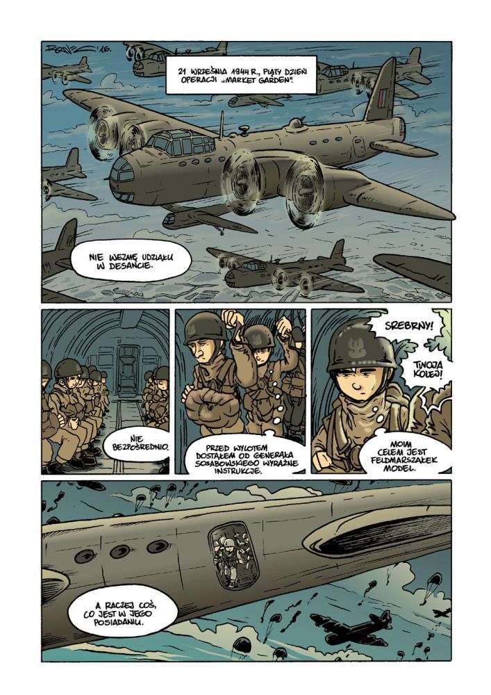 Kolejna odsłona przygód Antka sprowadzi nas do „Małpiego gaju” w… Szkocji. Przejdzie on tam przyspieszony kurs spadochronowy pod czujnym okiem kpt. Kwaśnicy, by wraz z 1. Samodzielną Brygadą Spadochronową gen. Stanisława Sosabowskiego wziąć udział w największej operacji powietrzno-desantowej II wojny światowej – „Market Garden”. Czy Antek weźmie bezpośredni udział w morderczych zmaganiach o most na Renie? Czy trudno jest wylądować w obrazie feldmarszałka Walthera Modela? Jakie tajemnice kryją papiery doktora Grubera? Odpowiedzi na te pytania znajdziecie w szóstym zeszycie „Wojennej odysei Antka Srebrnego 1939–1944”.