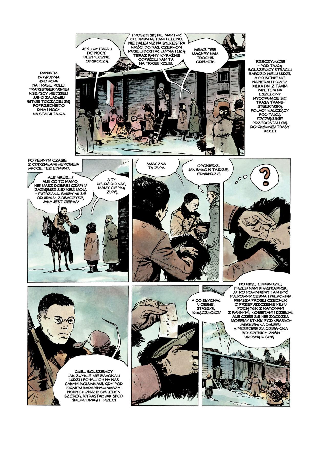 Pochód zimowy 1918–1920. Epopeja 5. Dywizji Syberyjskiej, scenariusz Sławomir Zajączkowski, rysunki Krzysztof Wyrzykowski, koncepcja, konsultacja i wkładka historyczna Kazimierz Krajewski, Tomasz Łabuszewski, Warszawa 2018, 64 s.