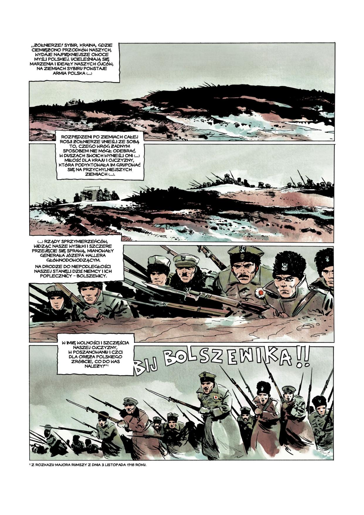 Komiks ukazuje losy 5. Dywizji Syberyjskiej – jednej z zapomnianych polskich jednostek tworzonych masowo w latach 1914–1920 na terenie Imperium Rosyjskiego. Formacja ta składała się z ochotników z bardzo różnych środowisk: żołnierzy byłej armii rosyjskiej, jeńców z armii austro-węgierskiej, niemieckiej, potomków zesłańców, rzuconych w wir okrutnej wojny domowej rozpętanej przez bolszewików. Mimo ekstremalnie trudnych warunków syberyjskiej zimy potrafili oni do końca zachować bohaterską postawę, z poświęceniem walcząc z przeważającymi siłami wroga.