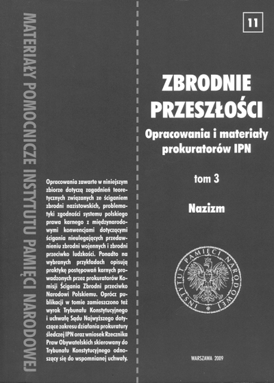 Opracowania zawarte w niniejszym zbiorze dotyczą zagadnień teoretycznych związanych ze ściganiem zbrodni nazistowskich, problematyki zgodności polskiego prawa karnego z międzynarodowymi konwencjami dotyczącymi ścigania nieulegających przedawnieniu zbrodni wojennych i zbrodni przeciwko ludzkości. Ponadto na wybranych przykładach opisują praktykę postępowań karnych prowadzonych przez prokuratorów Komisji Ścigania Zbrodni przeciwko Narodowi Polskiemu. Oprócz publikacji w tomie zamieszczono też wyrok Trybunału Konstytucyjnego i uchwałę Sądu Najwyższego dotyczącą zakresu działania prokuratury śledczej IPN oraz wniosek Rzecznika Praw Obywatelskich skierowany do Trybunału Konstytucyjnego odnoszący się do wspomnianej uchwały.
