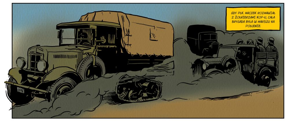 Dowodzona przez pułkownika Stanisława Maczka brygada stoczyła z Niemcami na terenie dzisiejszego woj. podkarpackiego dwie bitwy w okolicach Rzeszowa i Łańcuta. Do komiksu została dołączona płyta z dwoma utworami skomponowanymi przez Tomasza Bereźnickiego, który jest także muzykiem. Wydanie komiksu związane jest z 75. rocznicą września 1939 roku.