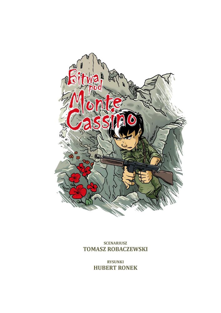 Bitwa pod Monte Cassino 1944 r., scenariusz Tomasz Robaczewski, rysunki Huber Ronek, koncepcja serii, wkładka historyczna i konsultacja historyczna Tomasz Łabuszewski, Warszawa 2015, 42 s. (seria „Wojenna odyseja Antka Srebrnego 1939–1944”, zeszyt 4)