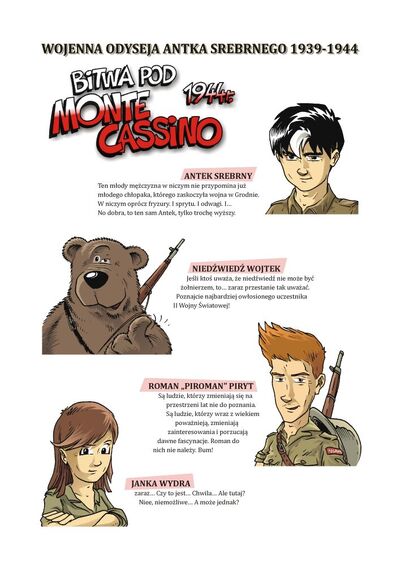 Komiksom (Zeszyty 1–4) towarzyszy gra planszowa oparta na fabule komiksowej, uzupełniona poważnym wsadem historycznym i ikonograficznym, wydatnie poszerzająca wiedzę o zdarzeniach przeżywanych przez głównego bohatera – Antka Srebrnego – na kartach poszczególnych zeszytów. Kolejnymi elementami pakietu są dwustronne puzzle ukazujące z jednej strony zdjęcia klisze, będące ilustracją poszczególnych czterech etapów drogi głównego bohatera: rok 1939, deportację, walki w Afryce i bitwę pod Monte Cassino, z drugiej zaś obrazujące polski wysiłek zbrojny na europejskim teatrze działań. Całość uzupełnia zestaw naklejek na ubrania prezentujący dwanaście naszywek noszonych przez oddziały polskie w Afryce i we Włoszech.
