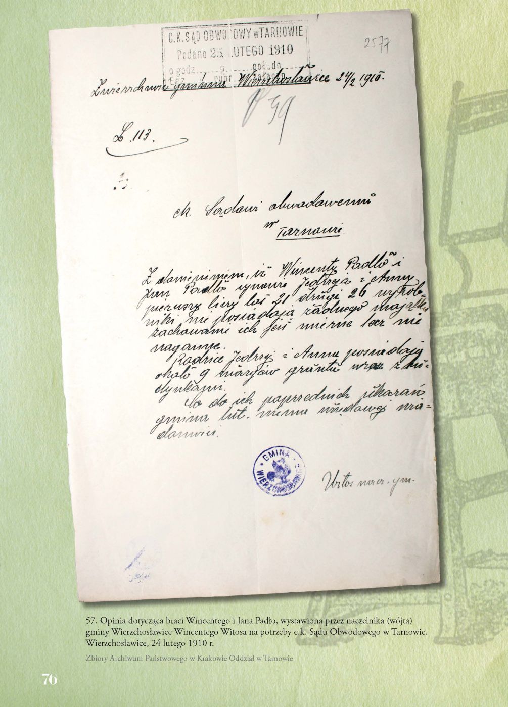 Wincenty Witos urodził się 27 stycznia 1874 r. w Wierzchosławicach k. Tarnowa. Ukończył szkołę elementarną w rodzinnej wsi. Był rolnikiem, działaczem społecznym, samorządowcem, politykiem związanym z ruchem ludowym. Od 1905 r. był radnym Rady Powiatowej w Tarnowie. W latach 1908–1931 pełnił funkcję wójta Wierzchosławic. Od 1908 r. sprawował mandat do Sejmu Krajowego we Lwowie, zaś w latach 1911–1918 posła do Rady Państwa w Wiedniu. Był członkiem władz powiatowych i okręgowych chłopskich organizacji społeczno-gospodarczych. Należał do partii: od 1895 r. – do Stronnictwa Ludowego (od 1903 r. Polskiego Stronnictwa Ludowego), od 1913 r. – do Polskiego Stronnictwa Ludowego-Piast.
