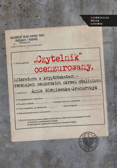 Anna Wiśniewska-Grabarczyk, „Czytelnik” ocenzurowany. Literatura w kryptotekstach – recenzjach cenzorskich okresu stalinizmu (na materiale GUKPPiW z 1950 roku), Warszawa 2018, 192 s., ISBN: 978-83-8098-439-4