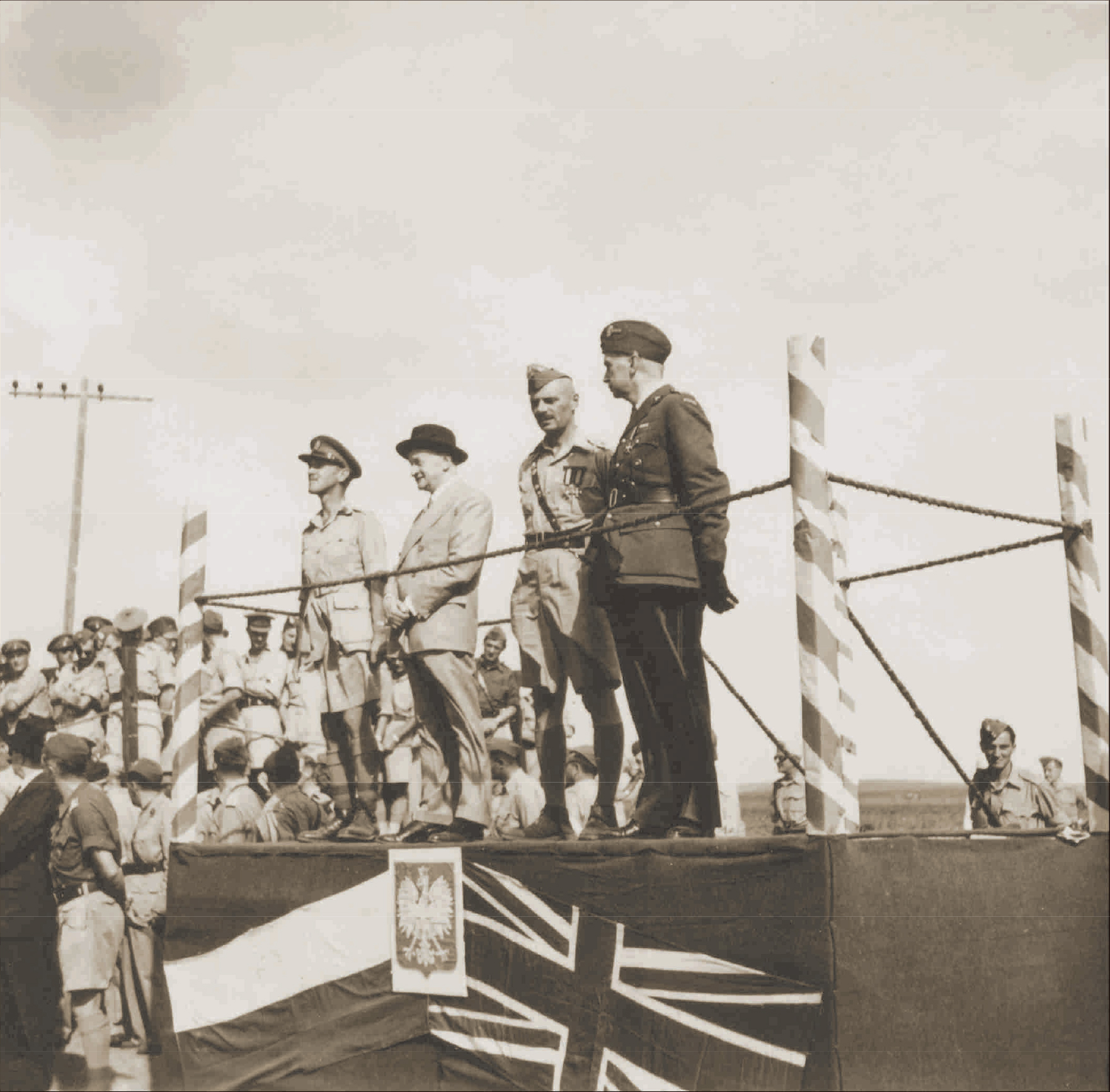 Naczelny Wódz gen. broni Kazimierz Sosnkowski, dowódca Armii Polskiej na Wschodzie gen. dywizji Władysław Anders i minister stanu ds. Bliskiego Wschodu Henryk Strasburger odbierają defiladę
