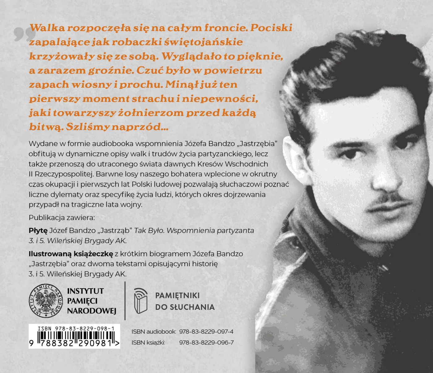 Józef Bandzo „Jastrząb”, Tak było. Wspomnienia partyzanta 3. i 5. Wileńskiej Brygady AK, Warszawa 2021, czyta: Marcin Kwaśny, ISBN książki: 978-83-8098-962-7, ISBN całości: 978-83-8098-966-5.