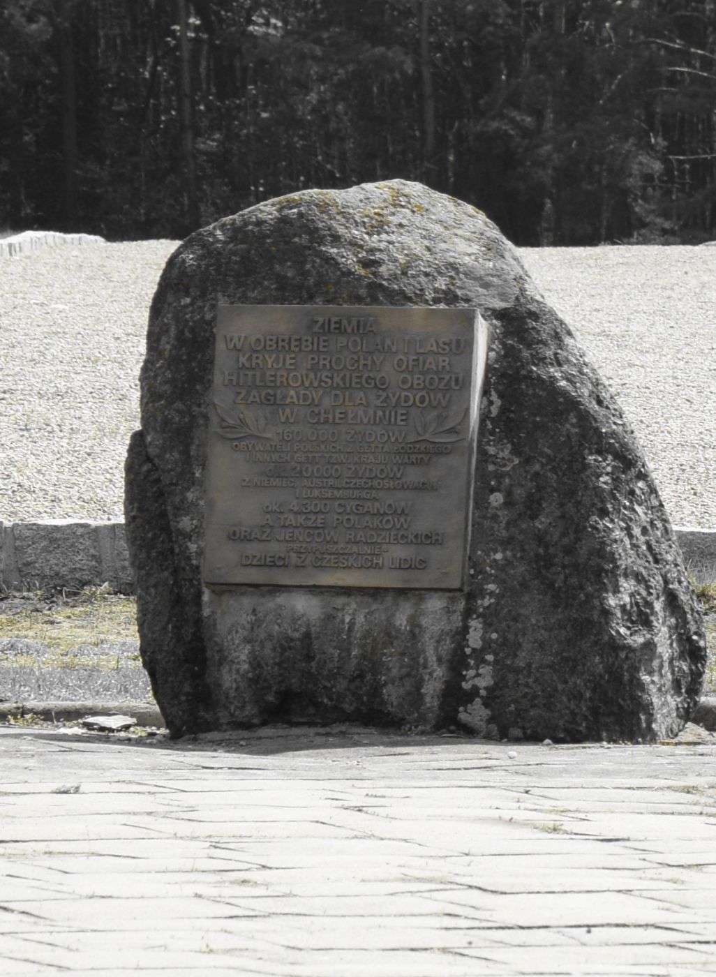 Upamiętnienie na terenie Lasu Rzuchowskiego, gdzie znajdują się zbiorowe mogiły ofiar ośrodka zagłady Kulmhof (fot. Maciej Foks)