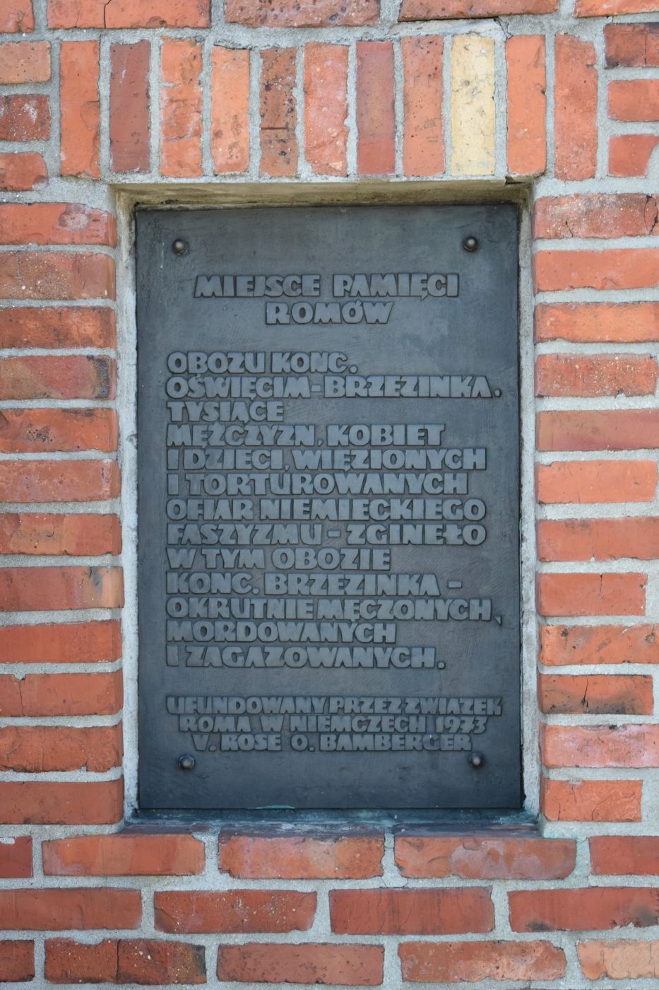 Tablica na pomniku na terenie byłego Zigeunerlager w KL Auschwitz II (fot. Maciej Foks) -