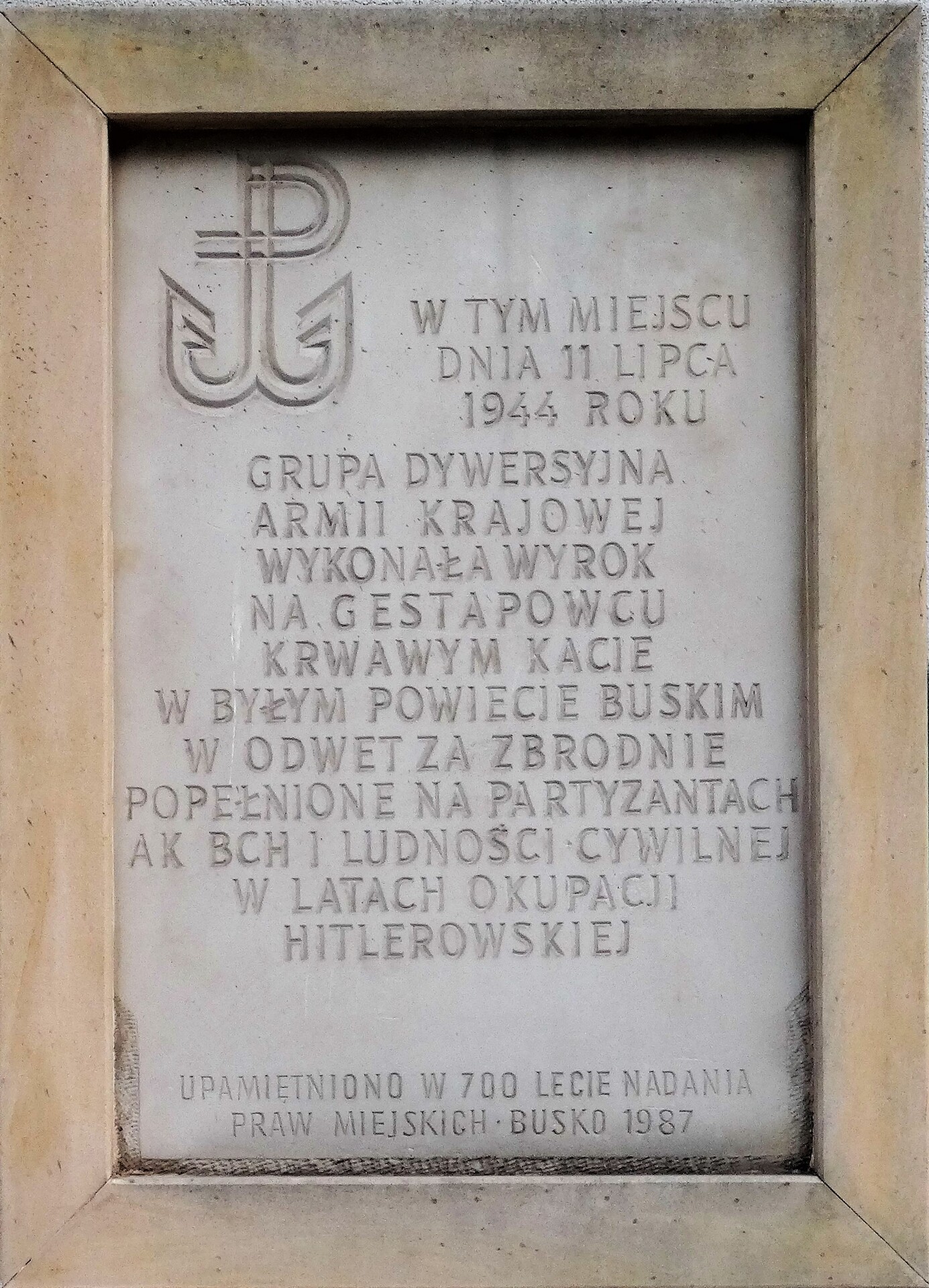 W stolicy Kreishauptmannschaftu więźniów przetrzymywano w pięciu miejscach. Były to: areszt tymczasowy w Busku-Zdroju oraz areszty zlokalizowane we wspomnianej willi dr. Byrkowskiego przy ul. Kościelnej (obecnie ul. Sądowa), w willi „Wersal” oraz w budynku Szkoły Podstawowej przy al. Mickiewicza. Ogółem przeszło przez nie kilka tysięcy mieszkańców. O systemie więziennictwa w miasteczku można szczegółowo przeczytać m.in. w moim artykule, opublikowanym na łamach „Rocznika Świętokrzyskiego”.