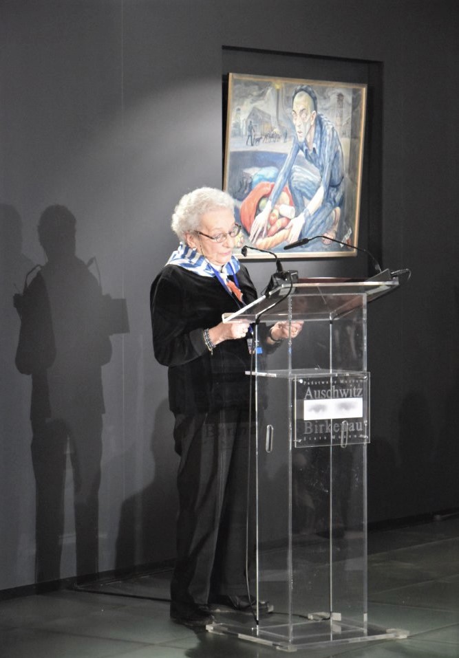 27 stycznia 2018 r. Niusia Horowitz-Karakulska przemawia podczas obchodów 73. rocznicy wyzwolenia KL Auschwitz