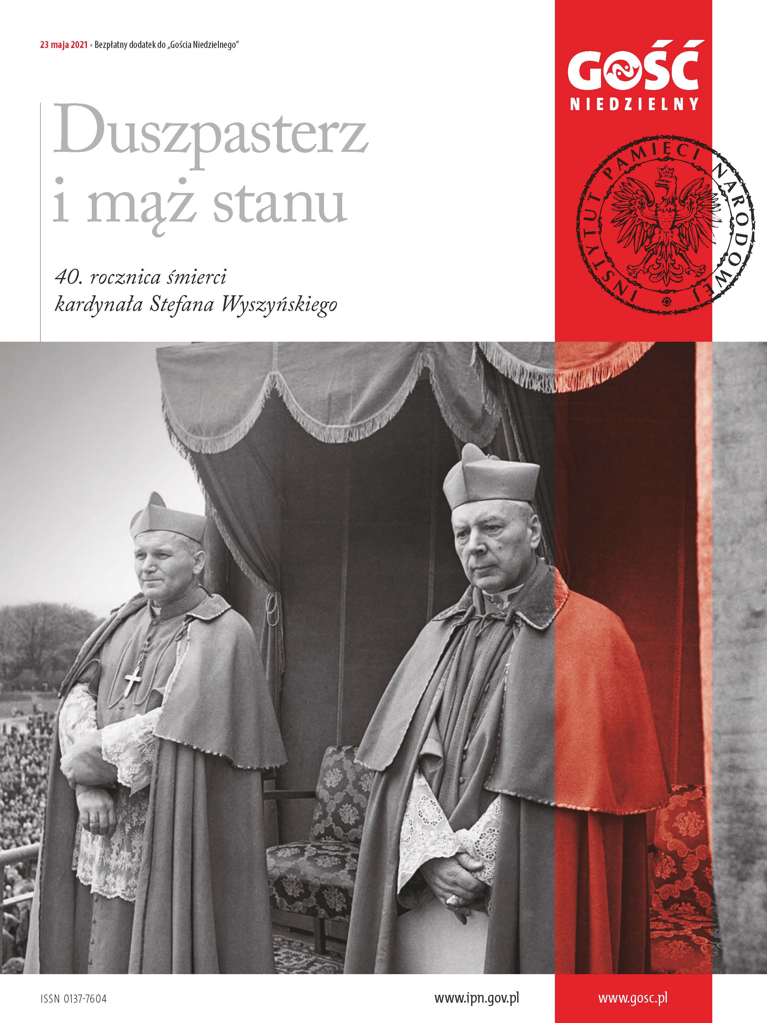 W związku z 40. rocznicą śmierci kardynała Stefana Wyszyńskiego Instytut Pamięci Narodowej oddaje w Państwa ręce dodatek poświęcony polskiemu duchownemu rzymskokatolickiemu, prymasowi Polski w latach 1948–1981 zwanemu „Prymasem Tysiąclecia”, mężowi stanu, obrońcy praw człowieka, narodu i Kościoła. Twórcy akcji duszpasterskich: Jasnogórskich Ślubów Narodu Polskiego czy Wielkiej Nowenny Tysiąclecia, inwigilowanemu przez aparat bezpieczeństwa Polski Ludowej oraz internowanemu. Czcigodnemu Słudze Bożemu Kościoła katolickiego.